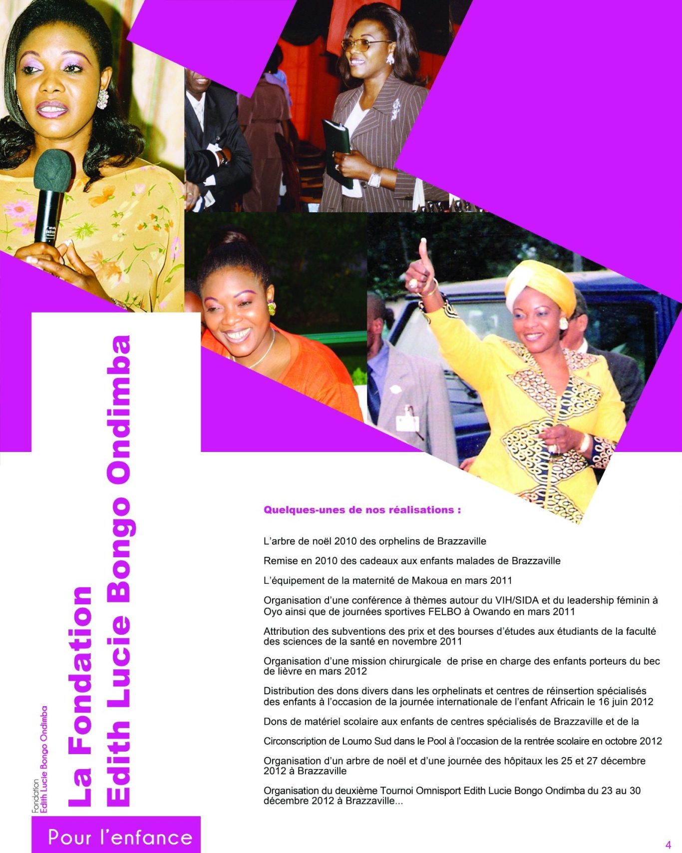 La Fondation Edith Lucie Bongo Ondimba en sigle FELBO est une fondation d’utilité publique dédiée à l’essor de projets sociaux et environnementaux au service de notre communauté. Inspirée par les principes d’action de Madame Edith Lucie Bongo Ondimba, elle œuvre avec conviction au Congo et à l’international pour faire rayonner ses aspirations dans les domaines suivants :
